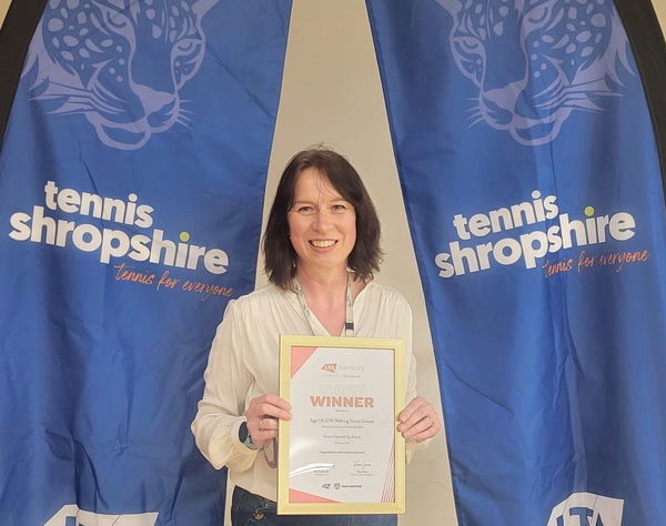 Shropshire, Telford and Wrekin Age UK Walking Tennis received the Tennis Opened Up Award, with Emma Wilde, interim Head of Wellbeing & Friendship Services for Age UK Shropshire Telford & Wrekin, receiving the award.
